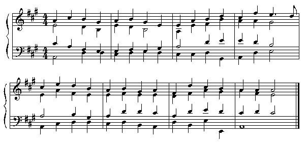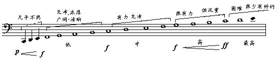 大家从这个表上就可以看出每个人声音在各个音区是不一样的,要训练合唱队尽可能地扩展自己较好音区,上下音色统一,了解自己音区的特色是一个长期艰苦而细致的工作。当然训练合唱队员能自觉调整自己的声音,使自己在合唱音响的洪流中发挥作用更是一个艰巨的事业了。 要熟悉良好音域搭建的和声效果最好的办法莫过于多作一些和声题,找四个人一起演唱。大家所学的合唱学,实际上就是来源于合唱,现在出版的和声书上谱例,以及请你做的练习,都不超过人的声区。除此以外你自己应当将和声题背着弹下来,上下二度或三度移调,对一个和声题不同音高上的色彩有所感受。大家仔细听这段练习在不同调高上的变化就可以将从音响上理解和声作业的重要性有一个新的认识。