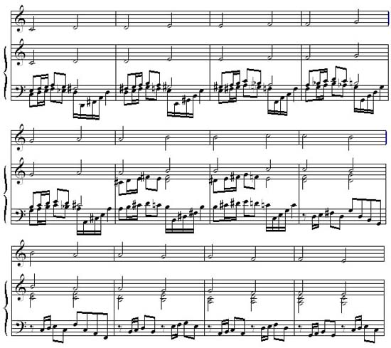 这些练习都不是孤立的,有时,为了解决即将演唱的作品难点,可以选择一部分来练习,切忌“走过场”,一定要将一条练习唱好,在音准、节奏、配合等方面都一致,才能继续练习,合唱队的水平也会逐步提高。