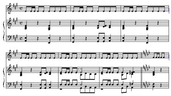 11、练唱上行的大三和弦时,要用不同的速度和不同的母音。例如: