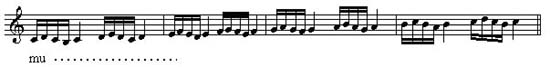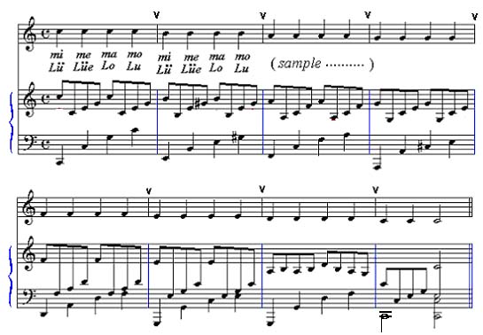 9.上述练习半音上行到高音处时,可根据情况改编母音。