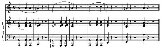 下面的练习尽量地让学生会听钢琴部分的和声,同时又要按照划定的记号呼吸。