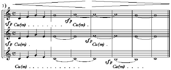 2、练习主要是练习合唱队声音的弹性反应,继而再练习Sfp 特殊记号演唱方法( 在作品的c-3与d-3处)