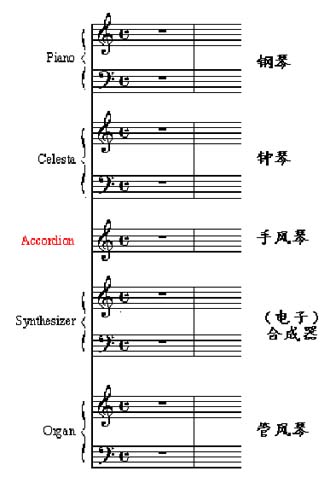 键盘乐组:乐队里不常用键盘乐器,有时会用其中的某几种;